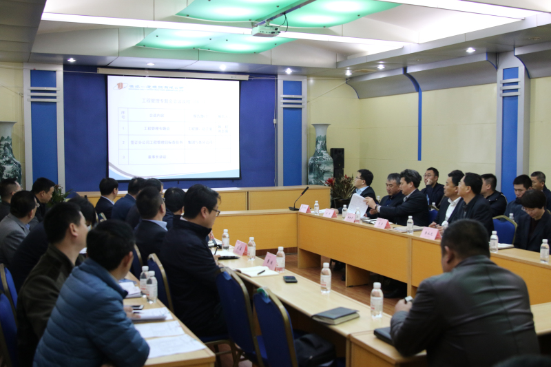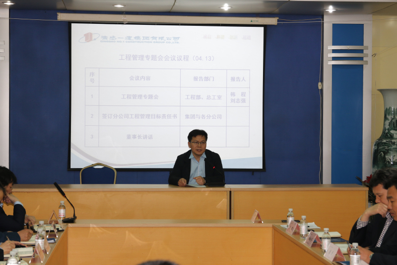 ? ? ? 4月13日,青島一建集團(tuán)在多功能廳召開工程管理專題會。集團(tuán)總裁助理以上領(lǐng)導(dǎo),各單位負(fù)責(zé)人,質(zhì)量安全技術(shù)分管領(lǐng)導(dǎo),總部職能部門負(fù)責(zé)人,項(xiàng)目經(jīng)理共60余人出席了本次會議。
