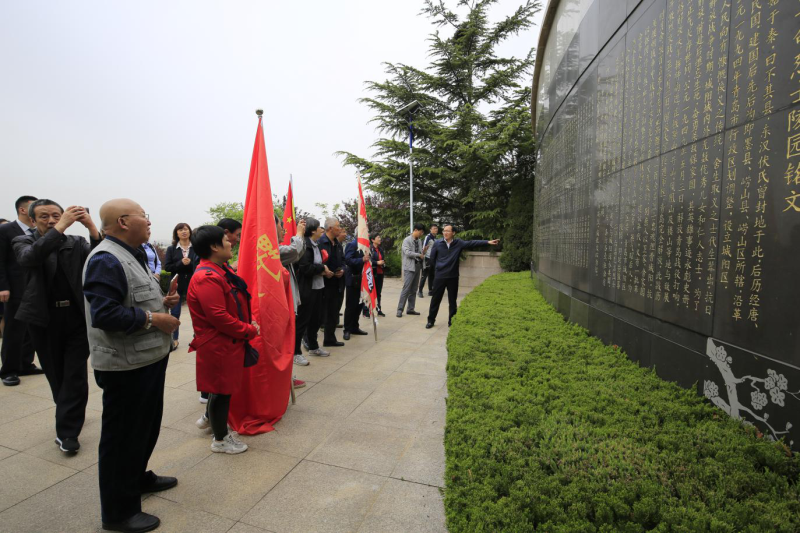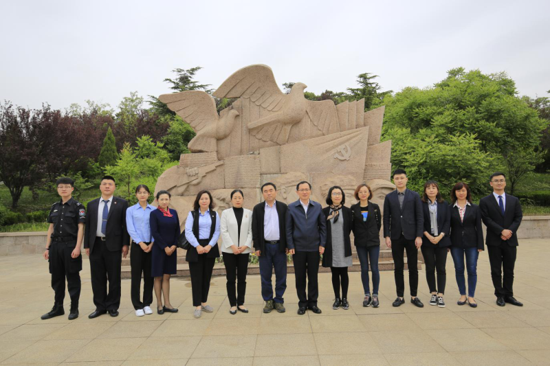 公司代表同黨校青年代表在革命烈士陵園浮雕前合影